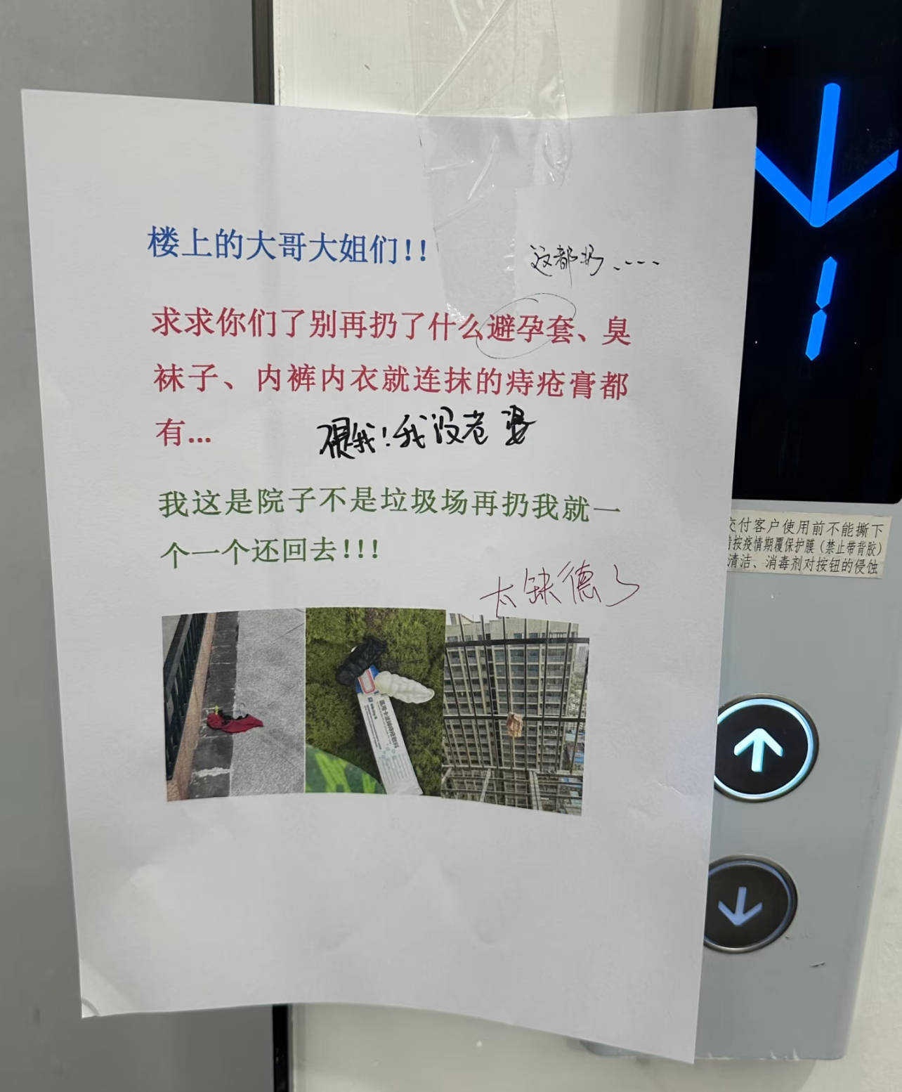 不仅仅是日常垃圾,还有一些新闻说高空抛物致人死亡,想一想都不敢太靠近院子了。