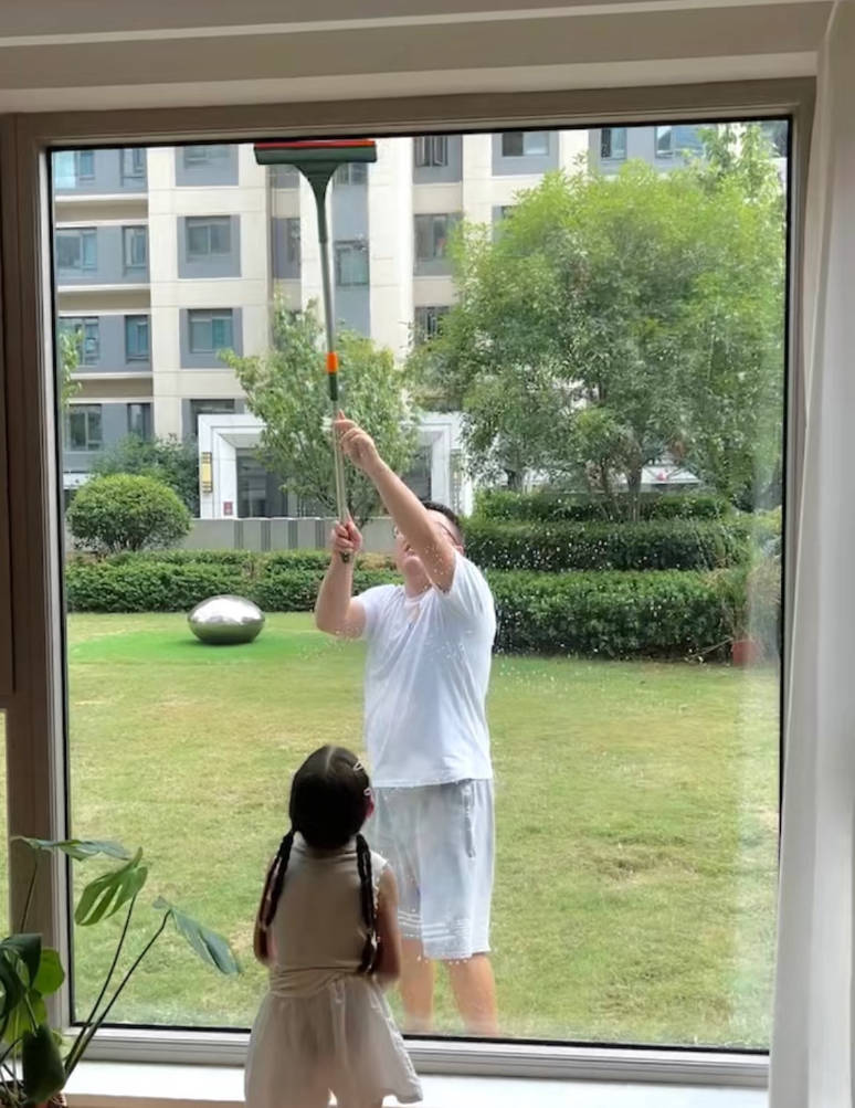 最让人喜欢的一点是,玻璃想擦就擦,两扇大玻璃,动手一下,20分钟搞定。没有高空作业的担忧,擦窗就像擦地一样简单。