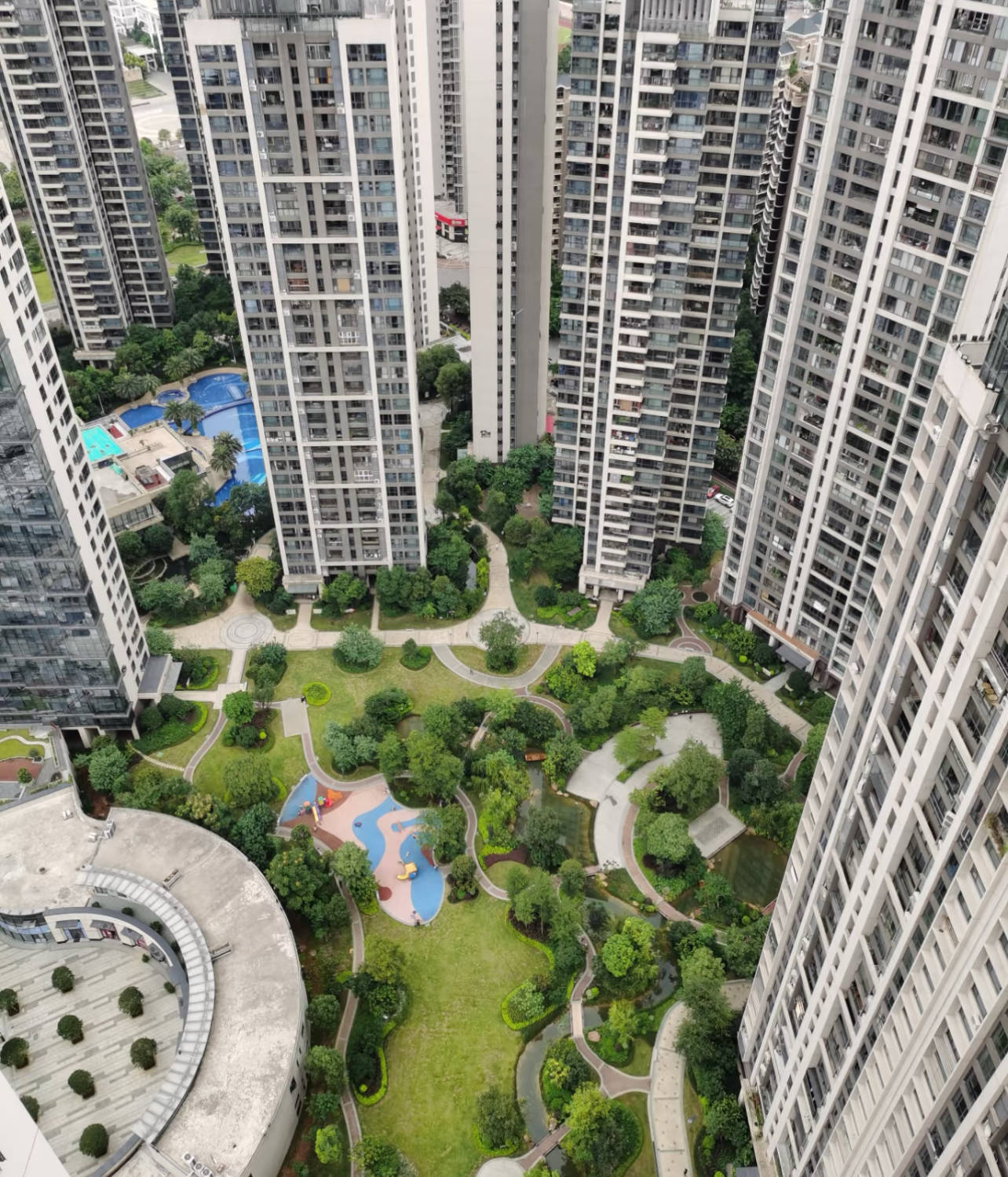 当初住46楼,住得太高,一点都不接地气。往下看,人像蚂蚁,车像甲壳虫,头晕得不行。